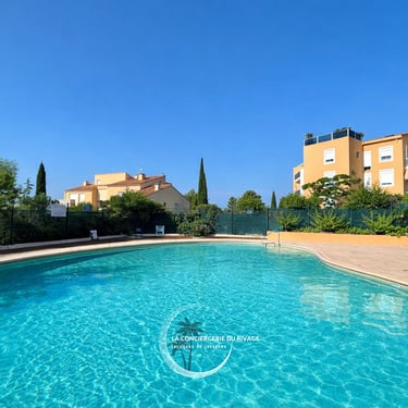 Accès à la piscine de la copropriété, entretenue toute l’année.
