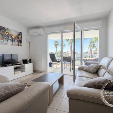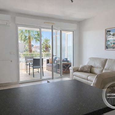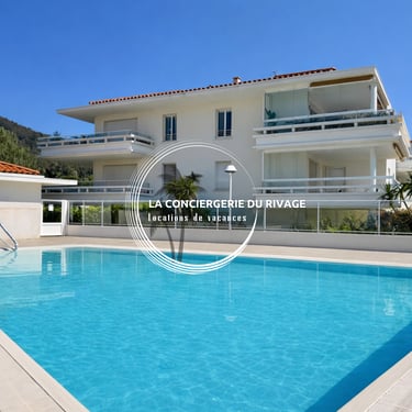 Appartement 2 chambres “L'Azuréa”, géré par La Conciergerie du Rivage, climatisé et situé au 1er étage avec ascenseur d’une résidence récente avec piscine, à proximité du parc Beau Rivage, du Port et des plages de Carqueiranne.