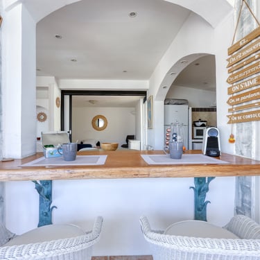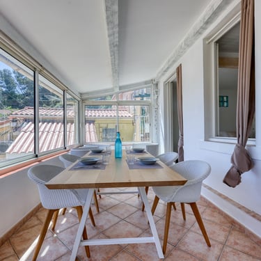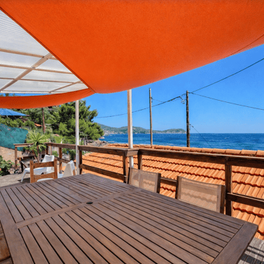 - Terrasse avec vue mer à 180°, idéale pour les repas ou les moments de détente