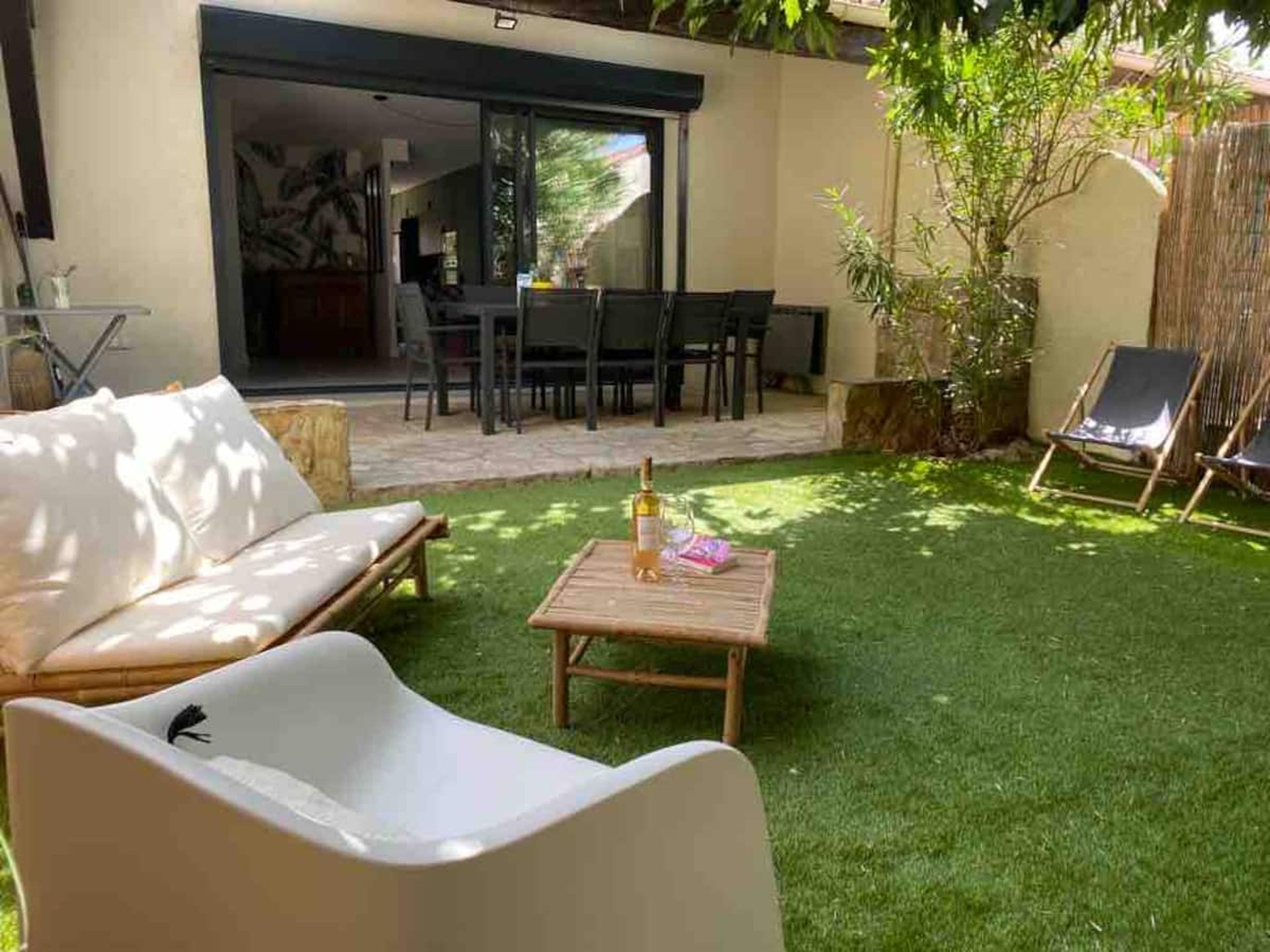 - Terrasse avec grande table, chaises.