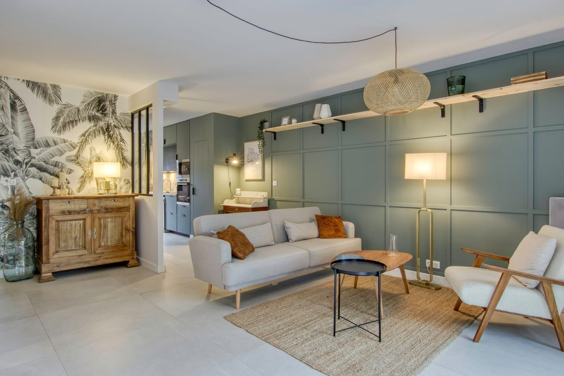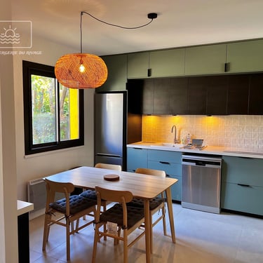 - Cuisine équipée (lave vaisselle, four, micro-onde, réfrigérateur congélateur, plaques à induction, cafetière Nespresso, grille pain, hotte...)