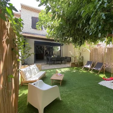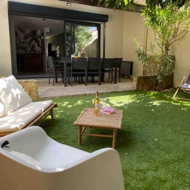 Maison de vacances entièrement rénovée, avec belles prestations, 3 chambres, terrasse et jardin, dans un quartier résidentiel calme sur la commune du Pradet.