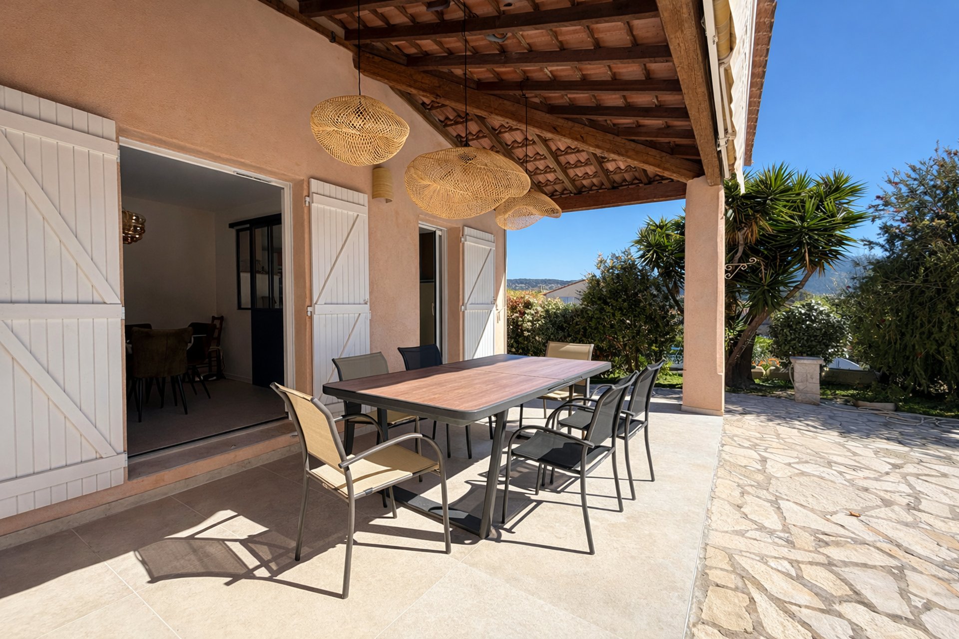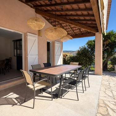 - Terrasse avec table et chaises.