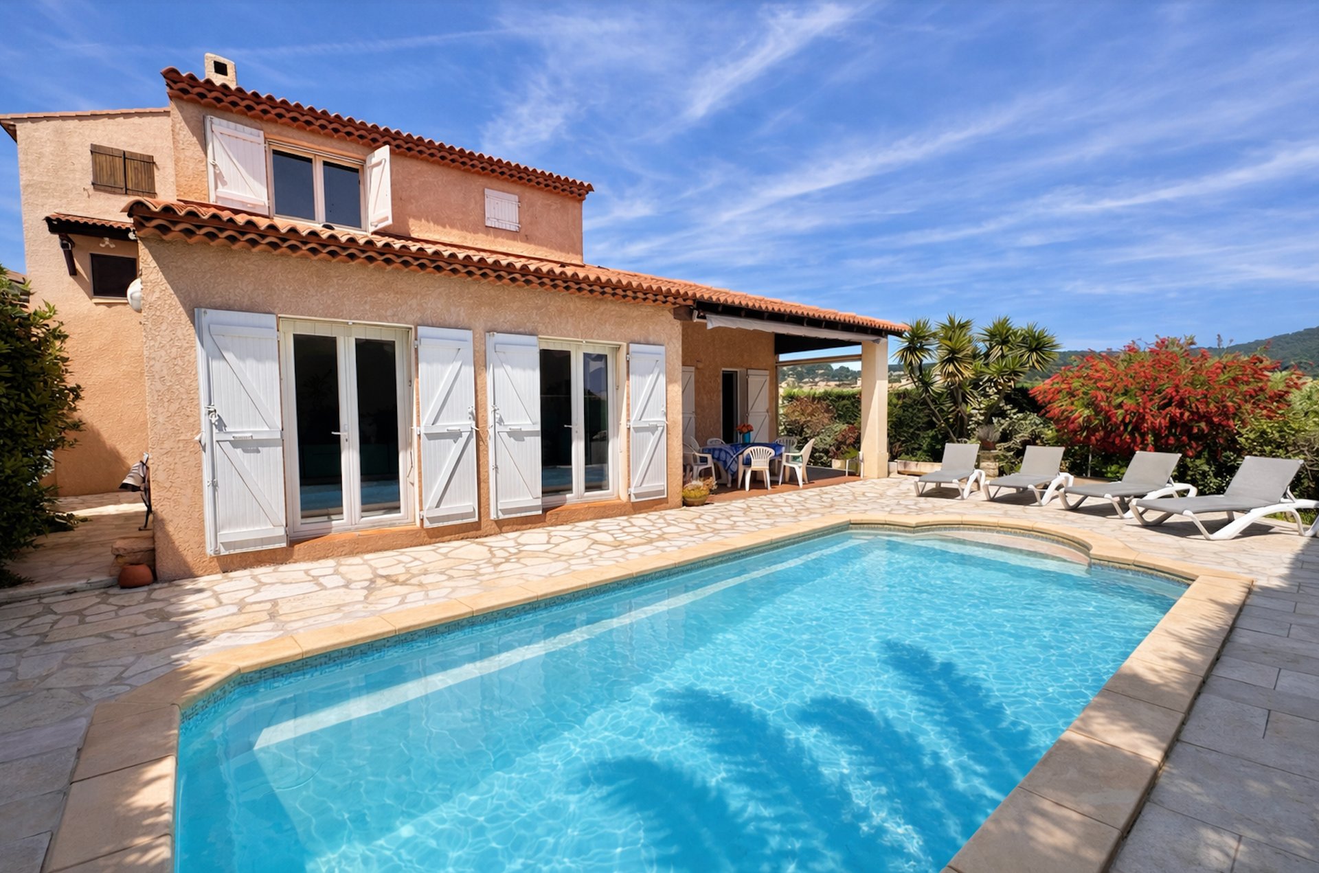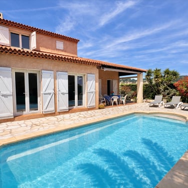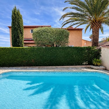 Villa "La Pialla" gérée par La Conciergerie du Rivage avec 3 chambres, terrasse et piscine entretenue sur le quartier résidentiel calme du Port de Carqueiranne.