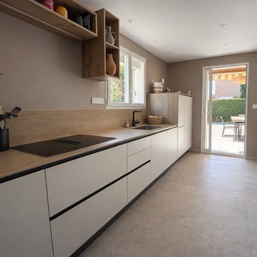 - Cuisine équipée (lave vaisselle, four, micro-onde, réfrigérateur congélateur, plaques à induction, cafetière Nespresso, bouilloire, plancha électrique, hotte...).
