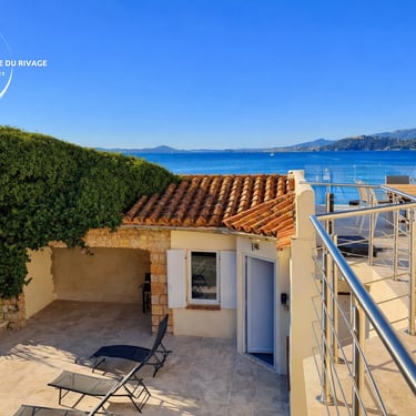 - Plusieurs terrasses aménagées dont une terrasse à l’étage avec vue panoramique sur la mer et sur la baie du Pradet.