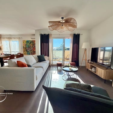 - Grand salon-séjour lumineux bénéficiant d'une exposition Sud avec accès au balcon et vue dégagée jusqu’à la mer.