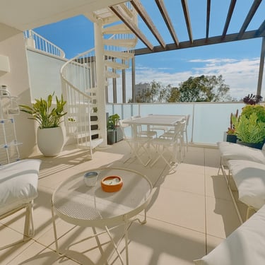 - Solarium sur le toit de la résidence avec chaises longues et fauteuils.