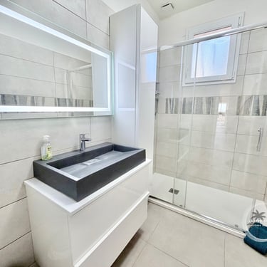 - Accès direct et privé à la petite plage située juste devant la propriété (via deux portillons sécurisés, déverrouillables).